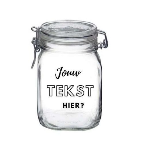 Op zoek naar een leuk persoonlijk en uniek kado, waar je zelf nog een persoonlijk tintje aan kunt geven? Onze weckpot snoeppotten kunnen bedrukt worden met naam, eigen tekst of een leuke persoonlijke boodschap. Alles is naar wens aan te passen!